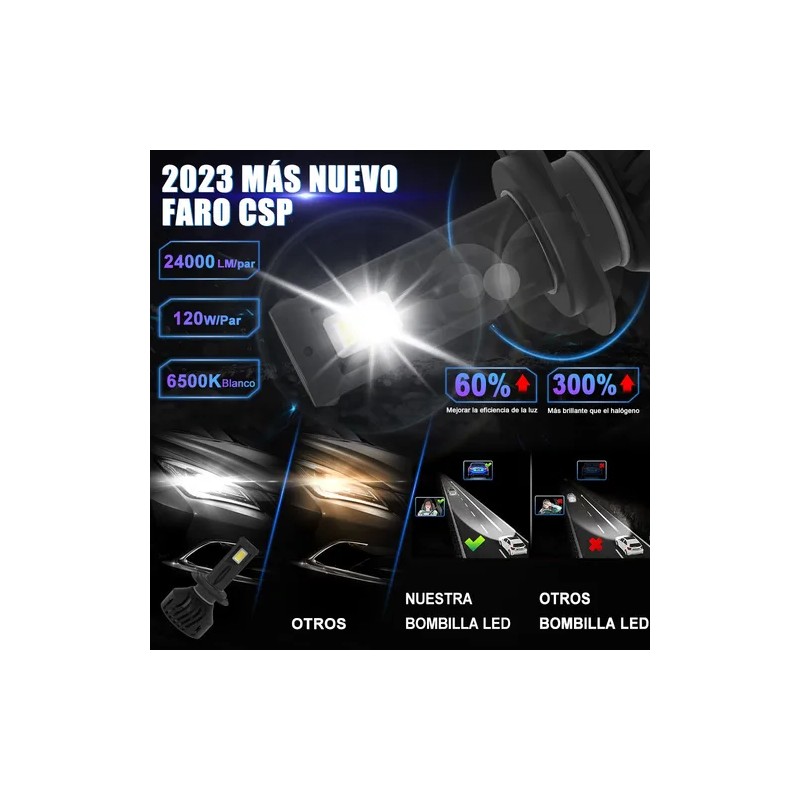 Lúmenes reales: Hasta 24000LM/juego y 12000LM/tipo de bombilla