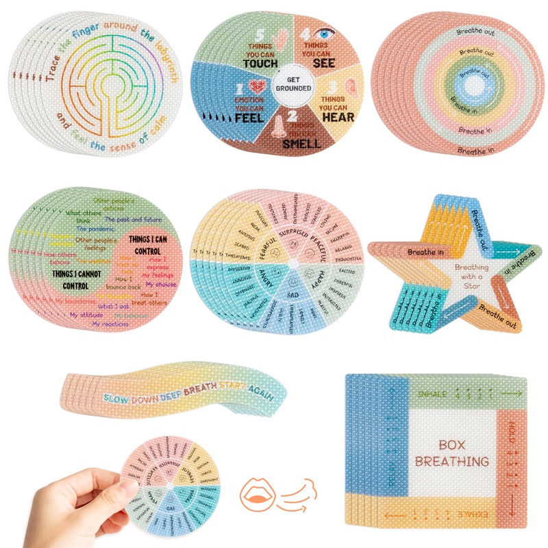 H1vojoxo 48PCS Breath Anxiety Sensory Stickers Anti Stress Textured Sensory Stickers Tactile Textured Mindfulness Sticker for Desk and Phone Stress Anxiety Relief Adhesive for Children Adults