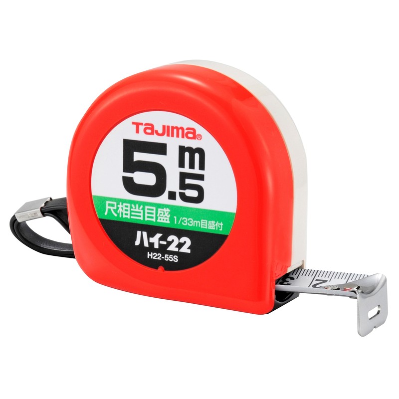 • テープ長さ(m):5.5 テープ幅(mm):22 水平保持(m):2.1 目盛仕様:尺相当目盛
