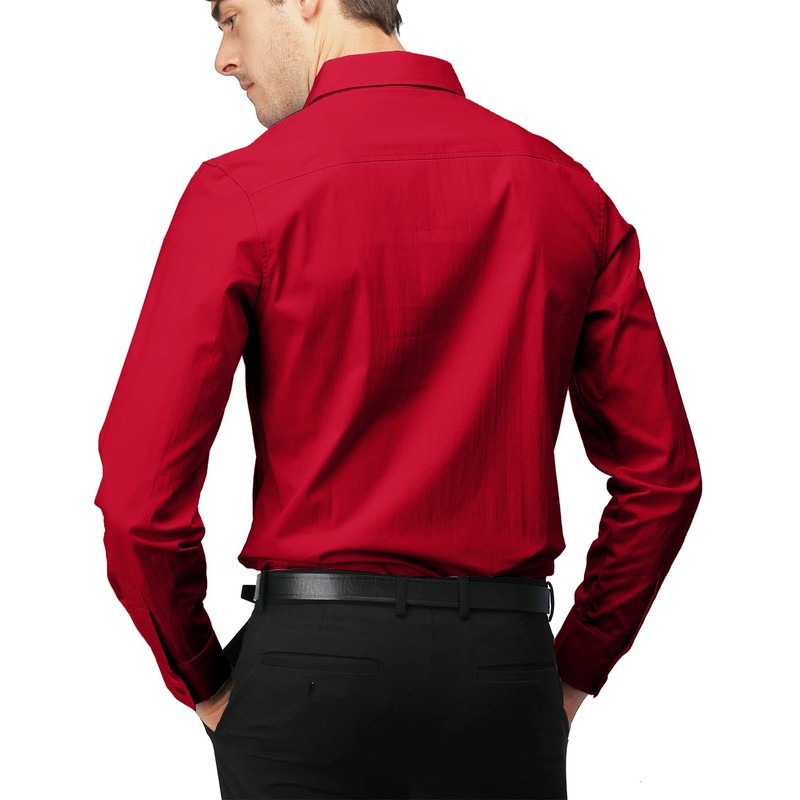 H2H Men's Dress Shirts Long Sleeve Formal Solid Business Wddding Button Down RED US XL/Asia XXXL (JASK14)