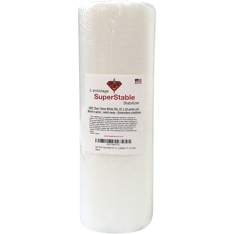 H2O"Eau" Gone White FSL 12 inch x 25 Yard Roll. Wash n Gone - Wash Away - SuperStable Machine Embroidery Stabilizer Backing