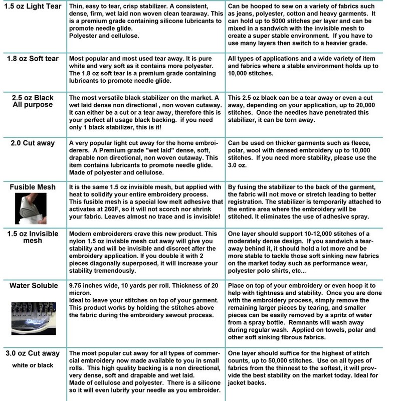 - This stabilizer is a complete washaway stabilizer, leaving no residu. It is a fibrous washaway stabilizer for free standing lace, fleece and pashmina. It dissolves easily in tap water leading to a far tighter definition, while being less messy than film stabilizers, as fibers hold stitches. Also , in humid climates, film stabilizers will sag leading to the loss of hooping tension and leading to a loss in definition. Made with 100% PVA ( Poly vinyl alcohol)