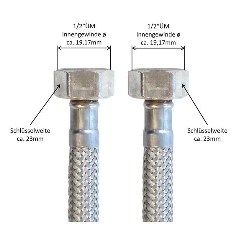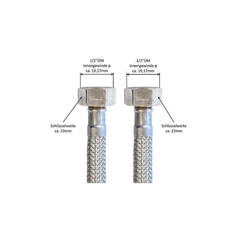 H2O-Flex® Reinforced Hose on Both Sides 1/2 Inch ÜM, Flex Hose with 2 x 1/2 Inch Union Nut DN8 for Sanitary Fittings with Drinking Water Approval 2000 mm