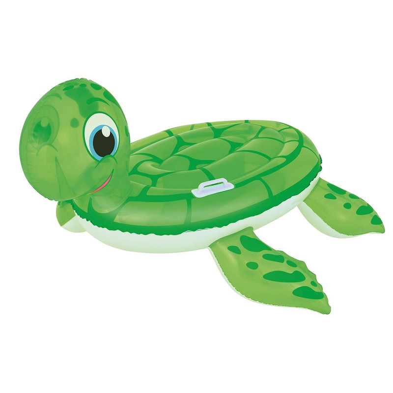 The Bestway Inflatable Turtle Ride-On is just the right size for a single rider to float around the pool. The smiling face of this inflatable turtle is bound to inspire tons of creative water play with friends and family! The heavy duty handle makes staying on this inflatable turtle easy, even when slippery from pool water. Made from durable vinyl to withstand the rough and tumble of playtime in the pool. Also comes with a repair patch in the unlikely event of a puncture. Suitable for ages 3 and up.