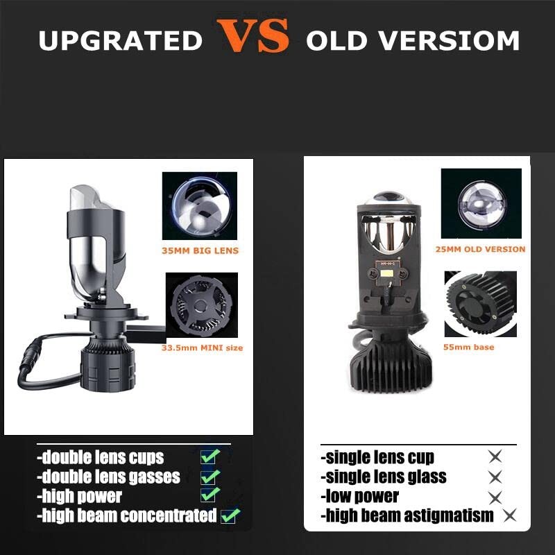 HDYEGIOU H4 Bulbs-30,000LM Extremely Bright 6000K White Hi-Lo Beam Function with Clear Cut Off Line,H4/9003/HB2 Mini Projector Lens Retrofit Kit