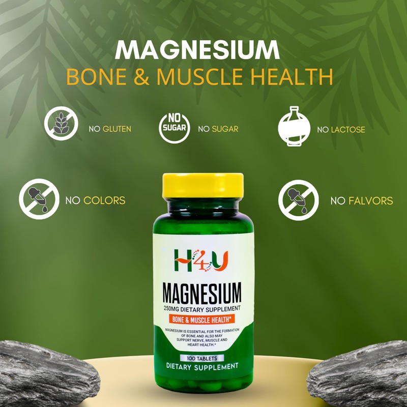 H4U - 4 TOP CARE Magnesium Bone & Muscle Health Dietary Supplement Tablets, 250 mg, 100 Count