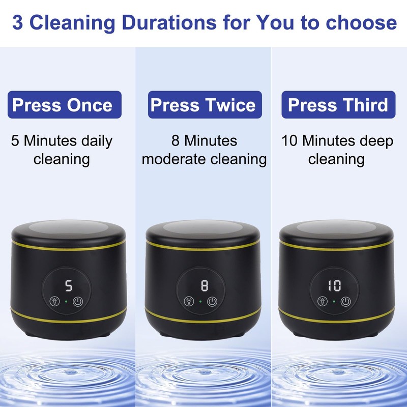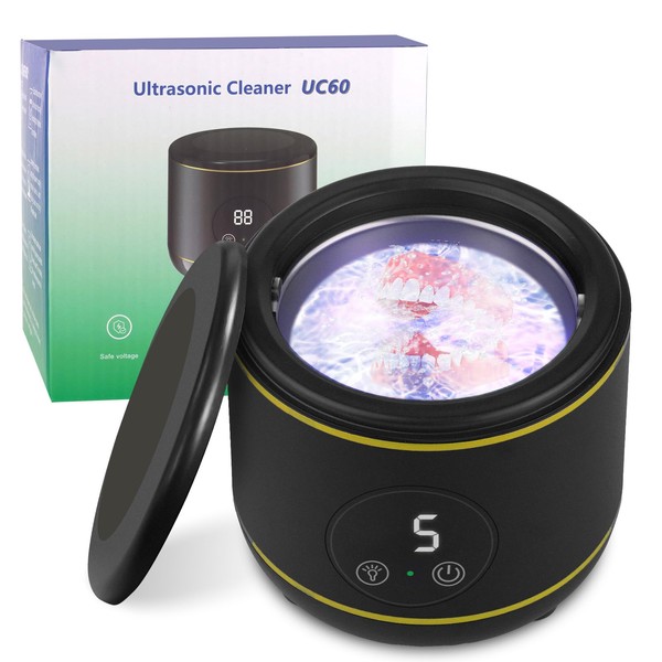 - Portable & User-Friendly Operation: Featuring a compact and lightweight design, this ultrasonic cleaner is perfect for home and travel use.With an intuitive one-button touch control and digital display, users can monitor the countdown timer and complete a full cleaning cycle in just minutes. Compatible with cleaning tablets, detergents, and mouthwash for optimal results.
