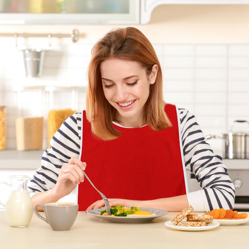 1.Lätzchen für Erwachsene sind aus wasserdichtem Material gefertigt. Das wasserdichte Futter verhindert, dass Flüssigkeiten Ihre Kleidung verschmutzen.