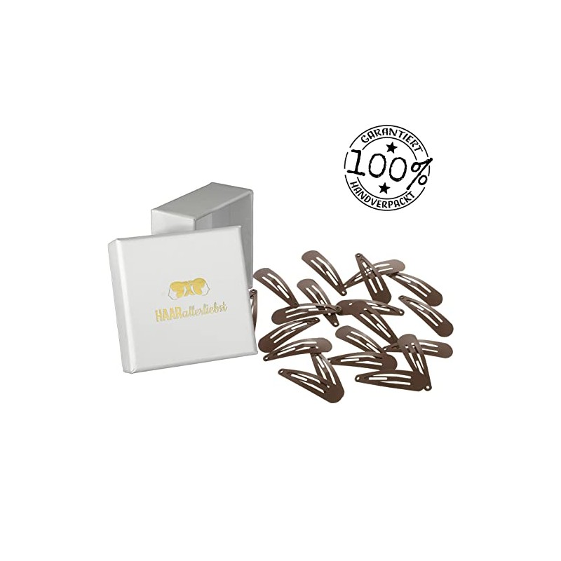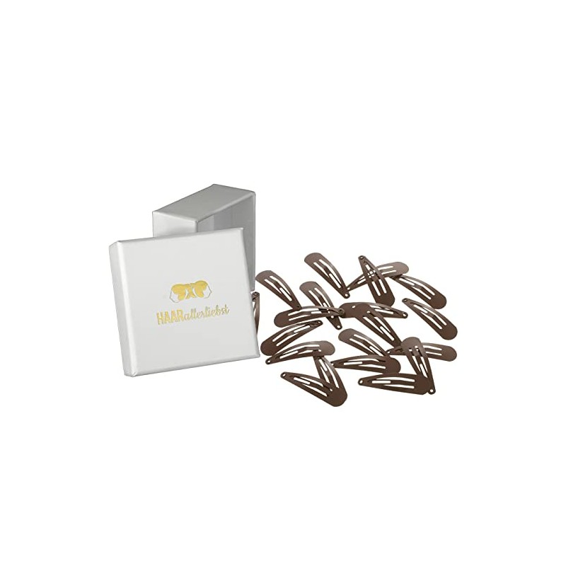 HAARallerliebst Hair Clips Small (Pack of 20, Brown, 3.9 cm) with Storage Box (Box Colour: White)