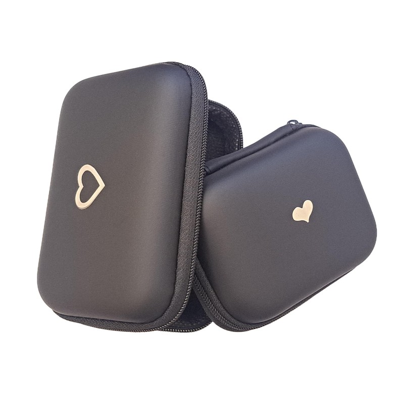HaawStez Small Rectangle Case Pouch Earphone Case Pouch Hard Protective Carrying Storage Case Bag for Earphone Headphone Earbud Headset SD TF Card (Black with Silver Heart 2pcs)