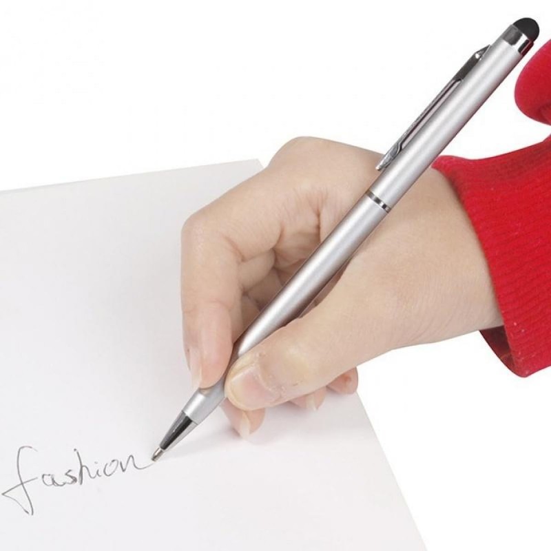 HaawStez Stylus Pens Universal Ballpoint Pen 2in1 Touch Pen for Smartphone Tablet Laptops Devices with Capacitive Touch Screens (Black+Silver 2pcs)