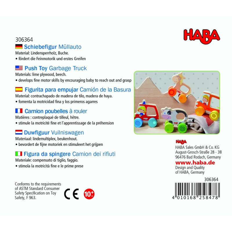 - The HABA sliding figure rubbish car is a great toy car for babies from 10 months to grip, roll and push.