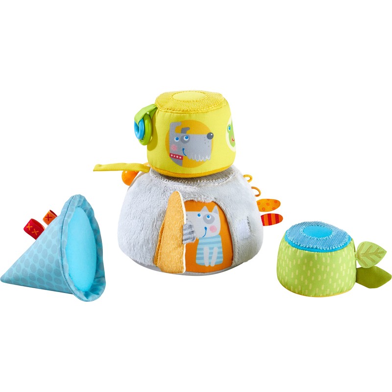 - The stacking figure animal high from HABA is a colourful tower made of soft fabric building blocks for babies aged 10 months and over; total height 29 cm