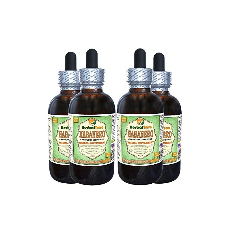 Habanero (Capsicum Chinense) Glycerite, Organic Dried Rinds and Fruits Alcohol-Free Liquid Extract (Brand Name: HerbalTerra, Proudly Made in USA) 4x4 fl.oz (4x120 ml)
