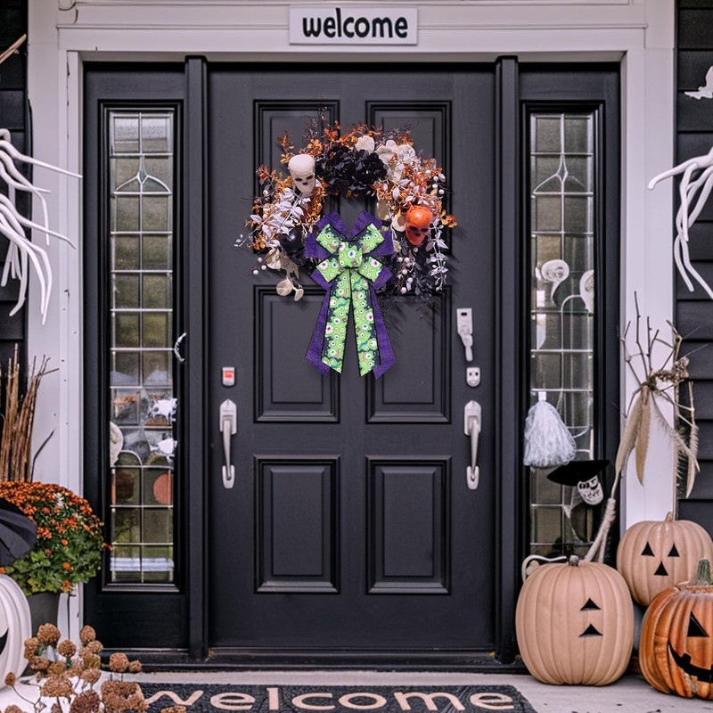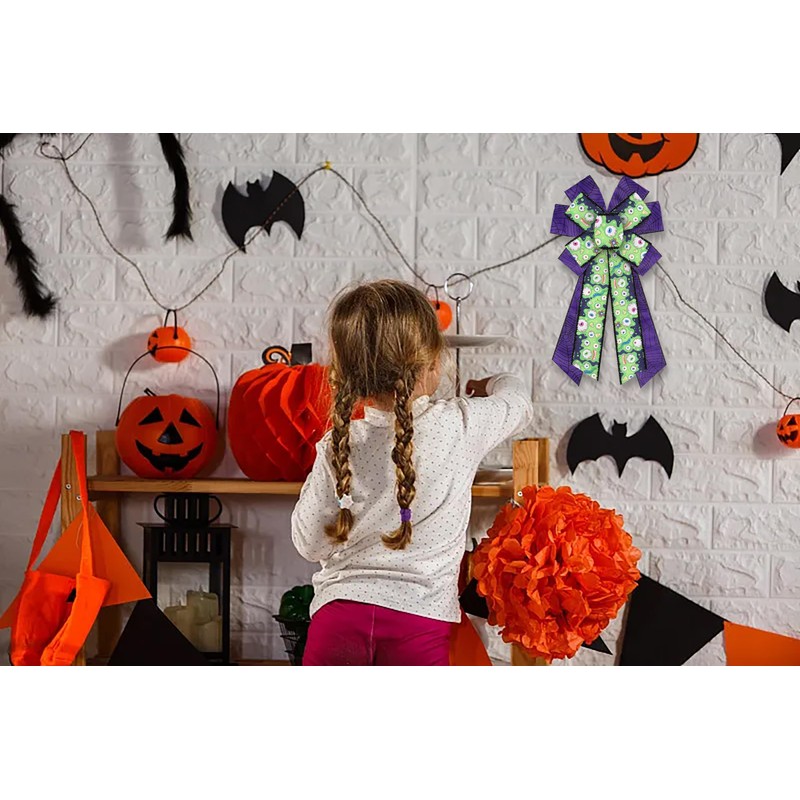 This uniquely designed Halloween ribbon set includes two different patterns: one with eerie eyeball and bug patterns, and the other with a classic purple spider web pattern. The vibrant colors and vivid designs make the ribbon stand out in any decoration, creating a strong Halloween atmosphere. Whether used for indoor decorations or outdoor setups, these ribbons add a special touch of horror and fun to your festivities.