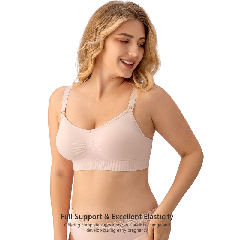 - DESIGN BOTH FOR PREGNANT AND NURSING: Full coverage design for additional support,wireless design makes our nursing bra very soft,it don't stress your rib,the elastic fabric give enough supporting to breast,it will keep the shape after washing.One-step feeding clasp you can take off the cup separately by one step and one hand,the breastfeeding get easier and no awkward.