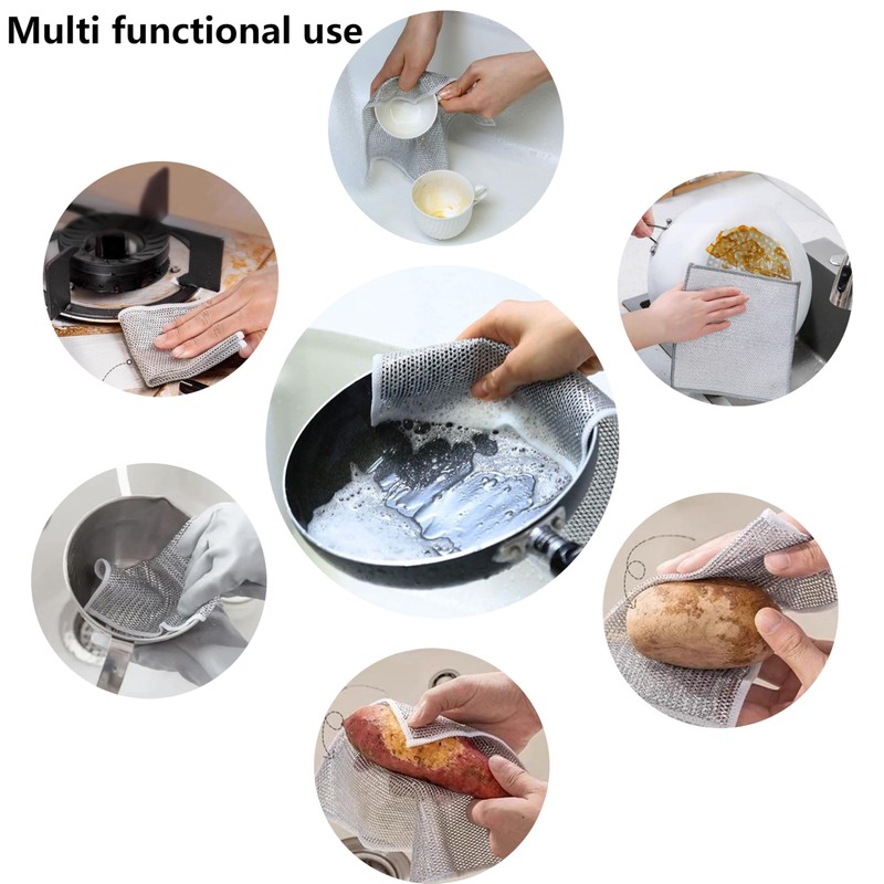 - 【Features of Metal Dishcloth】: The combination of metal material and soft silver threads not only ensures a deep cleaning effect, making kitchen utensils clean and shiny again, but also prevents scratching the utensils, ensuring that the cleaning process is safe and efficient.