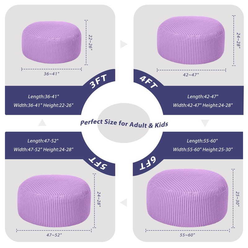 HABUTWAY 5FT Bean Bag Chair, 5' Large Bean Bag Chairs for Adults with Removable Stripe Plush Cover, Memory Foam Beanbag Chair for Living Room Bedroom Dorm (Purple)