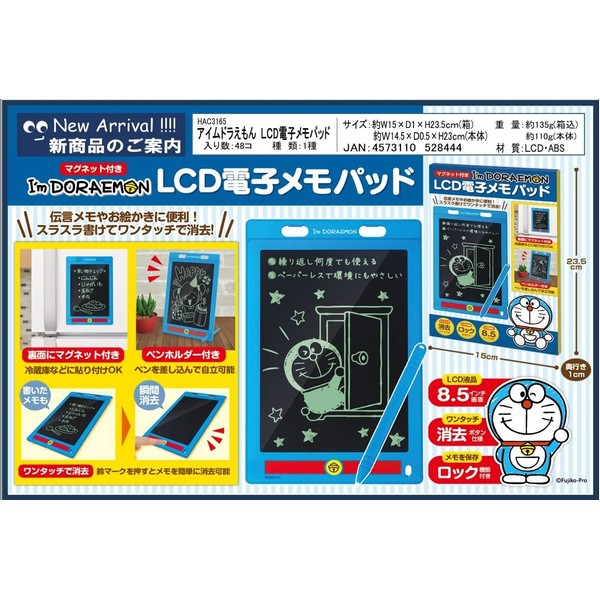HAC3165 Im Doraemon LCD Electronic Memo Pad 8.5 Inch with Magnet, Convenient for Message Notes and Drawing! You can write smooth and erase with one touch