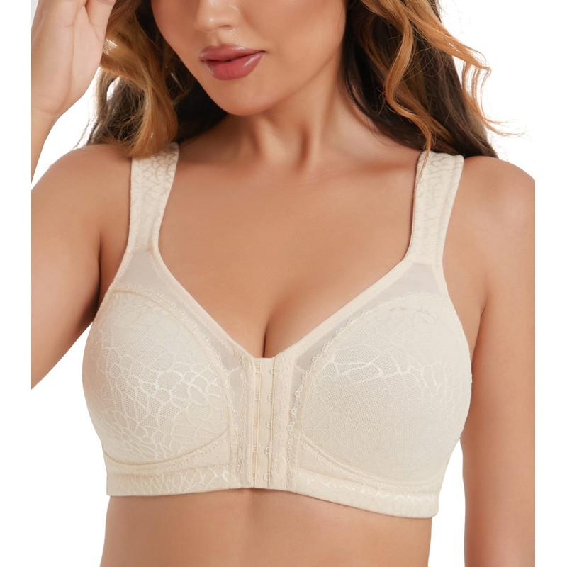 HACI Women's Front Closure Full Coverage Back Support Posture Bra Wireless Comfy(Nude,38D)