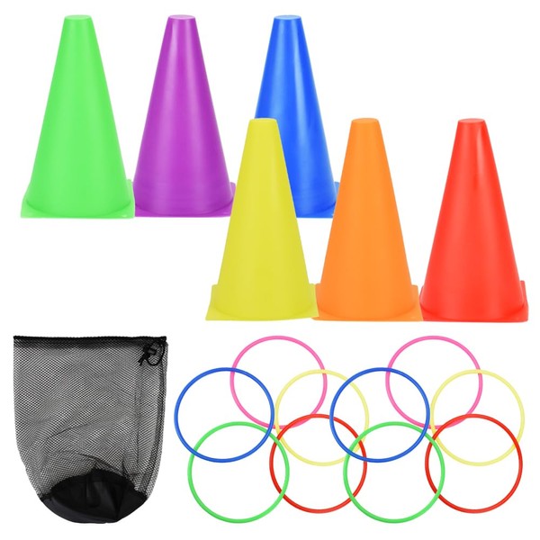 - Set Contents: Ring x 10, Cones x 6, Storage Bag x 1, Size (Approx.): Ring: Inner Diameter 6.3 inches (16 cm), Cone: 5.3 inches (13.5 cm) x 9.1 inches (23 cm); Color: Ring and cone colors are random