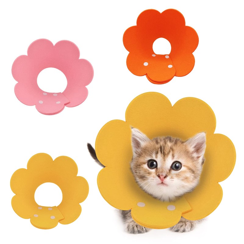 HACRAHO Pet Cone Collar, 3 PCS Cute Sunflower Shape Surgery Recovery Elizabethan Collars Adjustable Cone After Surgery Neck Collar for Cats and Dogs, Yellow and Pink and Orange
