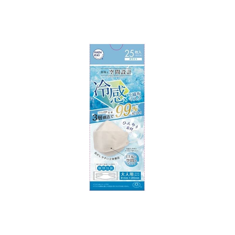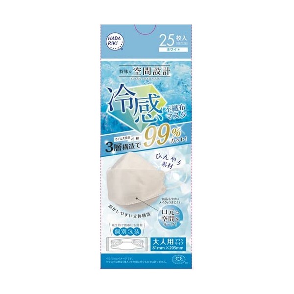 HADARIKI Space Design Mask, Cooling Non-Woven Mask, White, 25 Pieces, Individually Packaged, 1 Piece Summer Mask