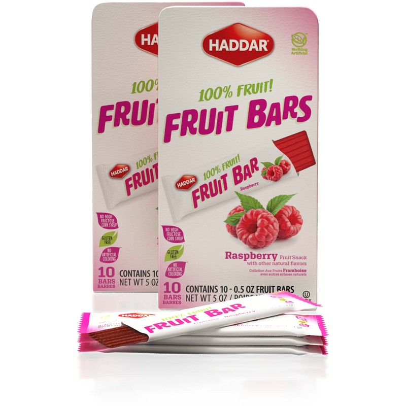 Haddar Raspberry 100% Fruit Bars, 10ct (2 Pack = 20 Bars) Made with Real Fruit | No Corn Syrup | No Artificial Colors or Flavors | Gluten Free | Certified Kosher