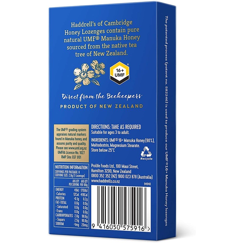 - Haddrell's of Cambridge Manuka Honey Lozenges provide the soothing qualities of 100% Pure UMF 16+ Manuka Honey.