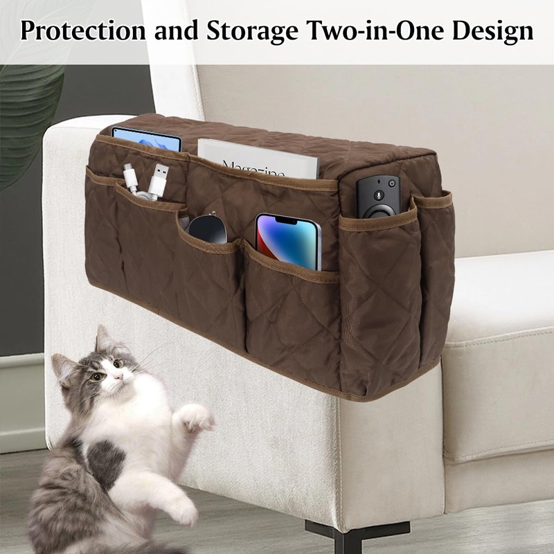 - Multiple Function:The arm chair caddy for recliner is not only practical, but also protect your sofa and decorate your home well. It is convenient for you to store daily things within reach, also prevent your valuable sofa armrest from being scratched and soiled by pets