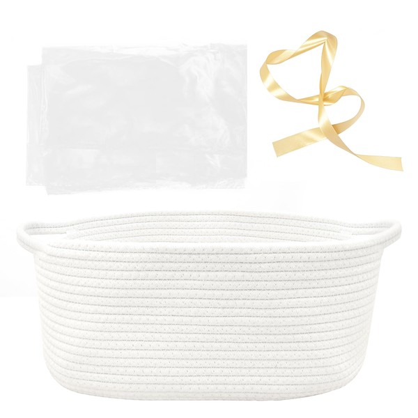 HADEEONG Woven Basket with Gift Bags and Ribbons, 14"X 10" X 6" Gift Storage Organizer Bin Shelf Shelves Cotton Rope Basket for Nursery, Pet Toys (White)