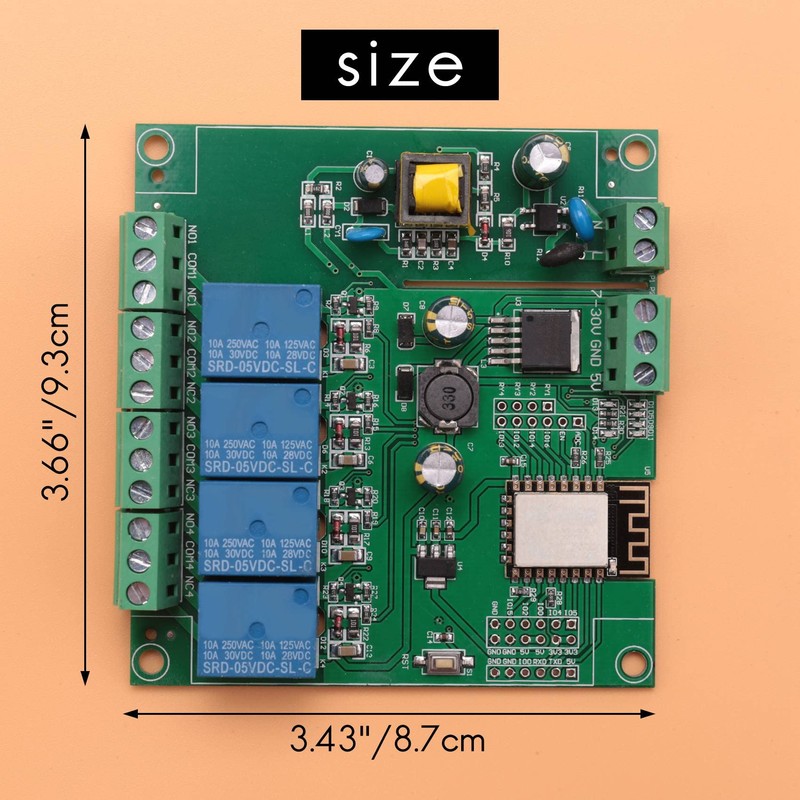 • Hadiih Esp8266 Wireless WiFi 4 Channel Relay Module Esp-12F WiFi Development Board for 5V/8-80V Power Supply