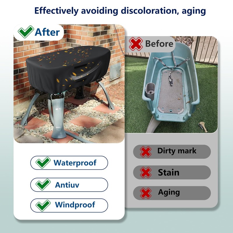 • 【Windproof design】-4 buckles and 1 elastic hem cord on the bottom can make the cover fix closely with the dog bathtub,resulting in a custom-like fit to esistant the bad weather and not be blown away by the wind.Structured air vents at two sides stay open to prevent internal condensation,and equipped with mesh barrier,waterproof and breathable.