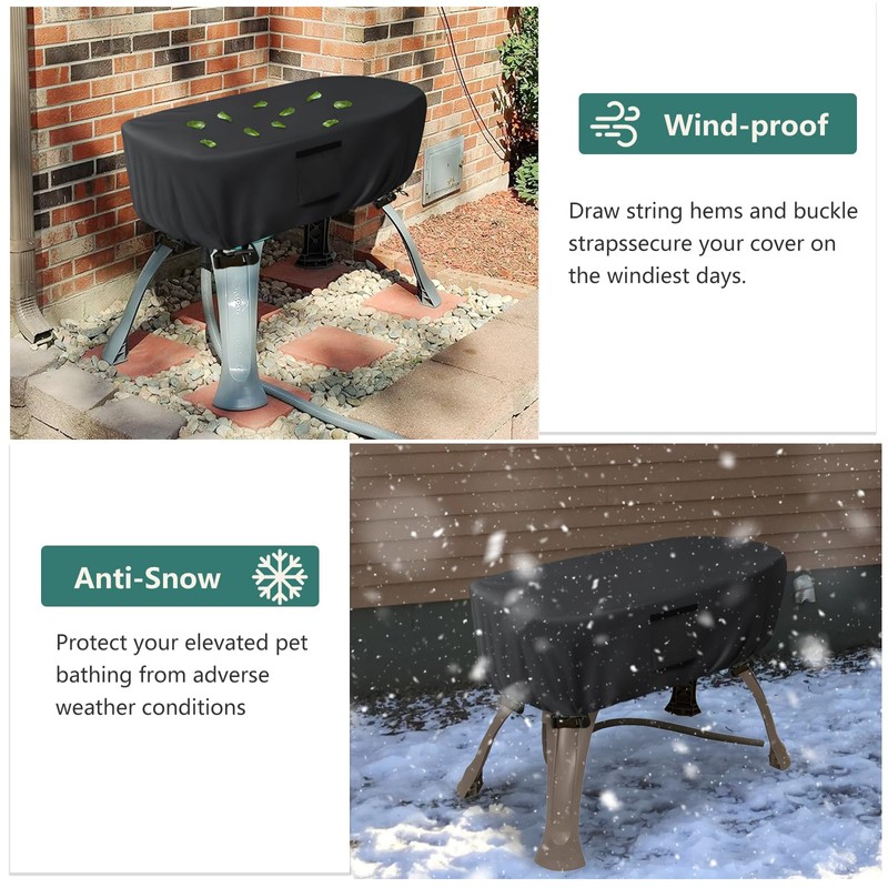 • 【Stury dog washing station cover】-Our dog bath cover is made of heavy duty 600D oxford fabric with waterproof coating,which is waterproof,UV-resistant,tear-resistant,etc.It can withstand bad weather conditions,make elevated elevated pet bathing always look like new.