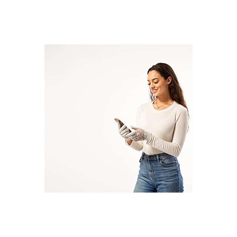 Hadley Wren Women's Knit Texting Glove Collection, Sparkle Leopard, Cream, On...