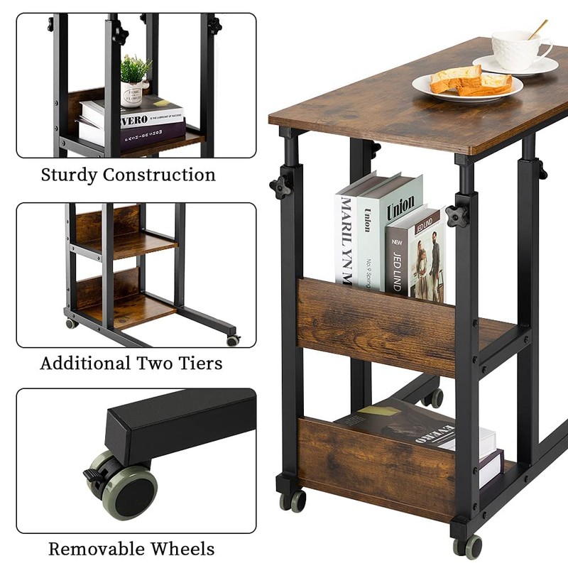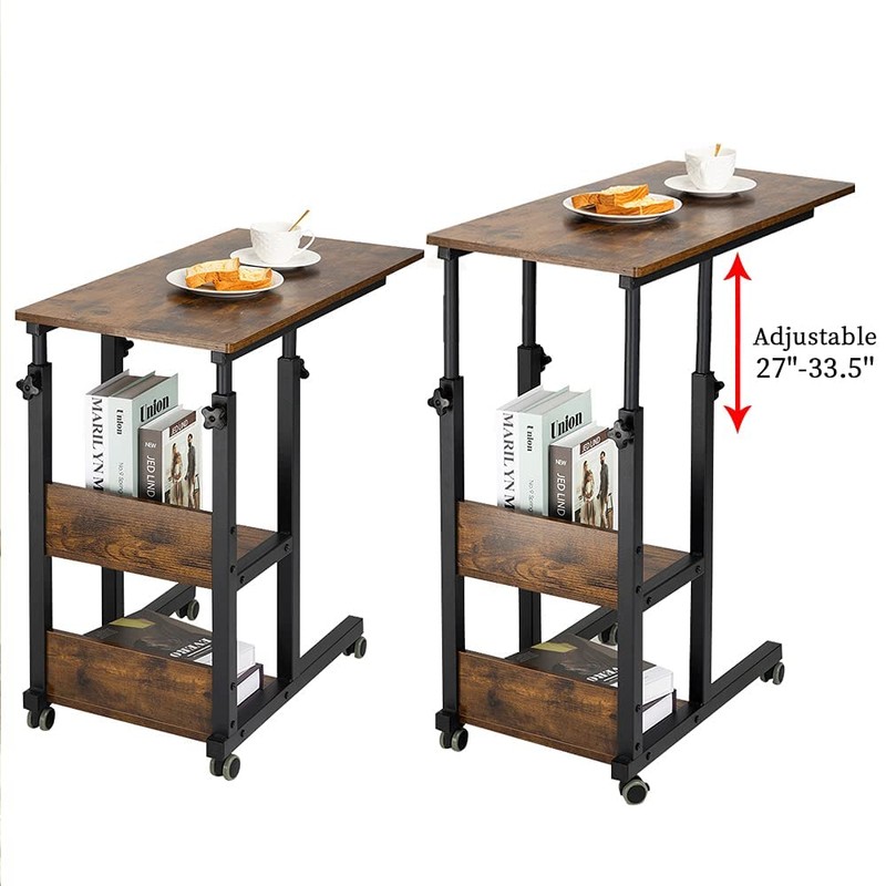 - Mobile & Versatile - The end table with wheels allows you to effortlessly switch between rooms. It is versatile and can be used as a overbed table, tv tray, rolling table adjustable height, computer table for couch and a c table with storage for the recliner, among others.