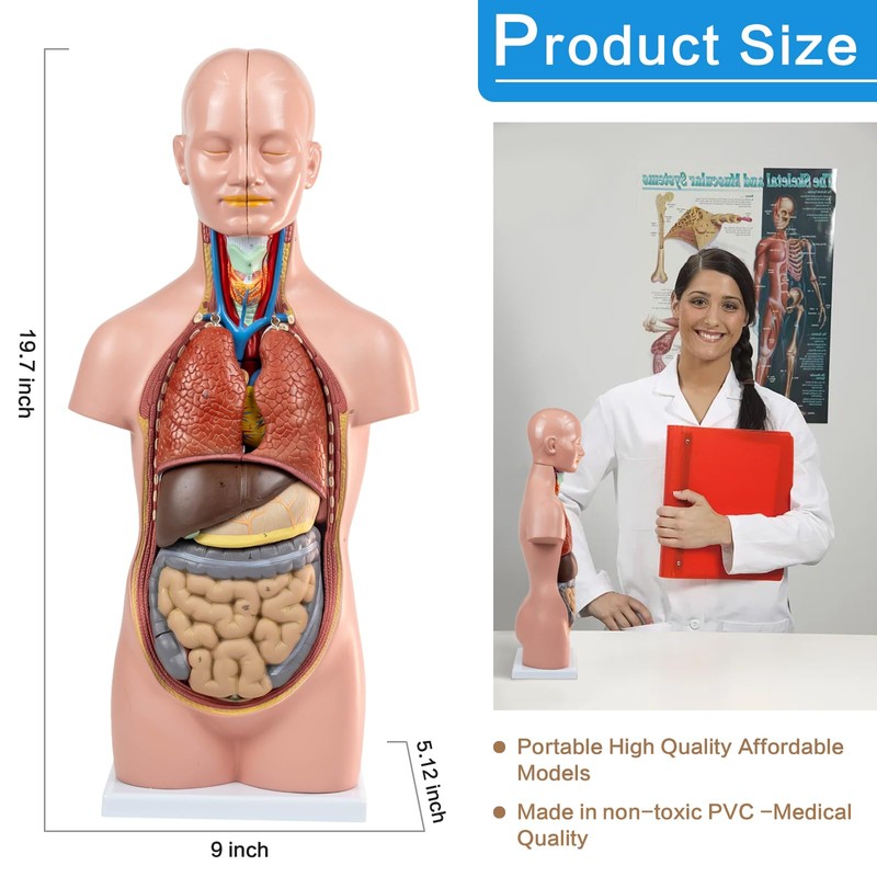 HADWYN 12 Parts Human Torso Model,20" Removable Human Torso Showing Section of Brain,Neck Dissected Exposes Muscular Neural,Vascular and Glandular Structure,Anatomy Model for Medical Learning