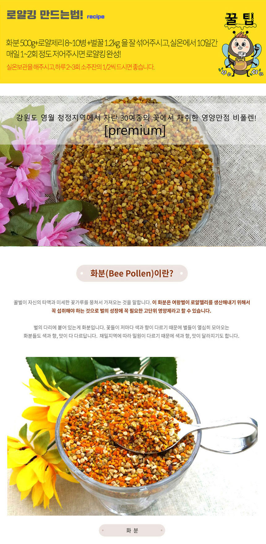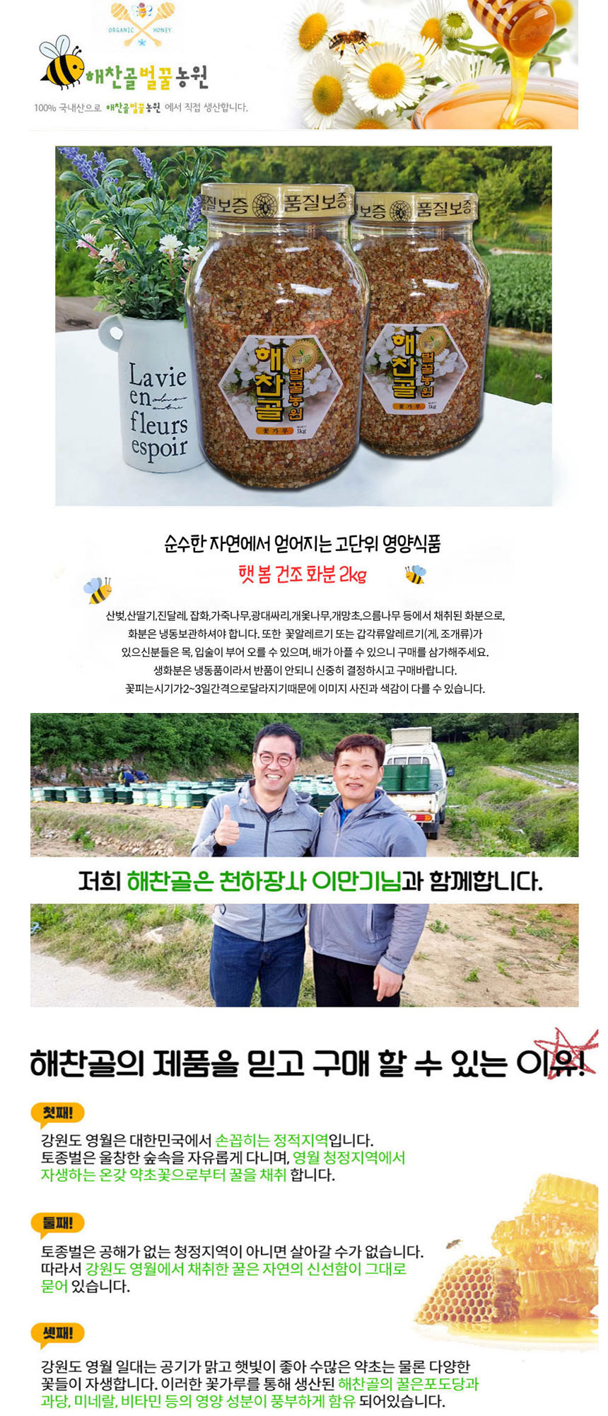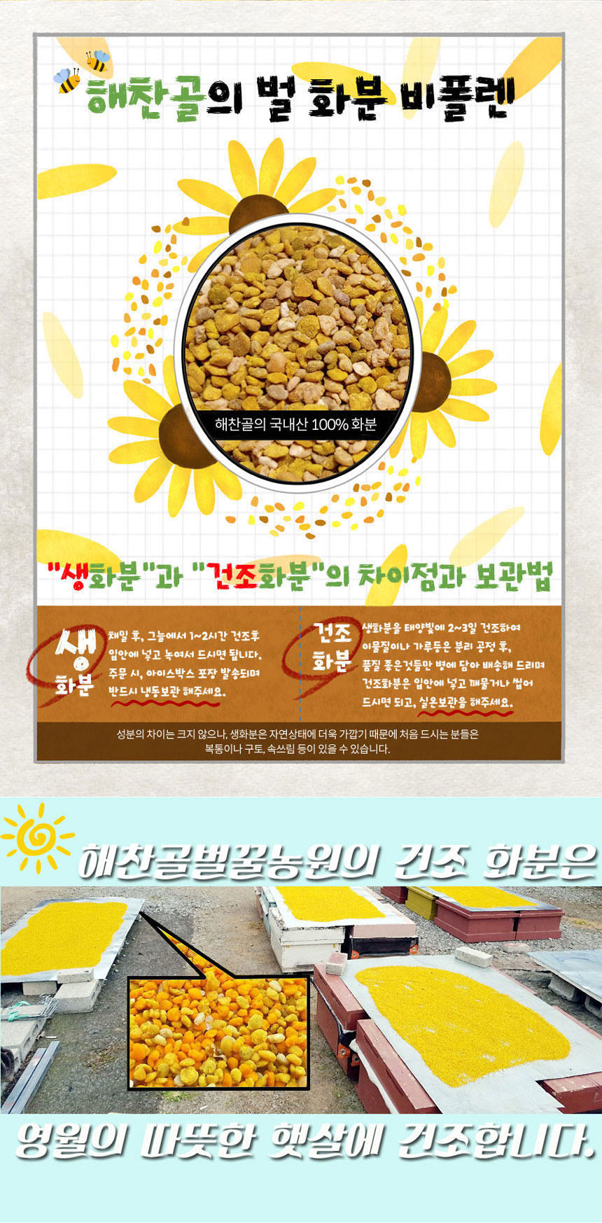 Haechangol Farm 100% domestic natural bee dried miscellaneous flowerpot bee pollen 2kg / 해찬골 농원 100% 국내산 천연 벌 건조 잡화 화분 비폴렌 2kg