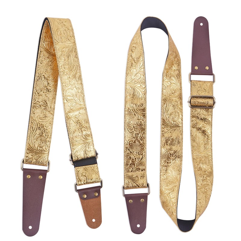 Haecsfl Adjustable Guitar Strap Includes 2 Strap Locks & 2 Matching Picks & 1 Picks Holder & 1 leather Strap Button.Leather ends Guitar Shoulder Strap(1-Carved5 Light Gold)