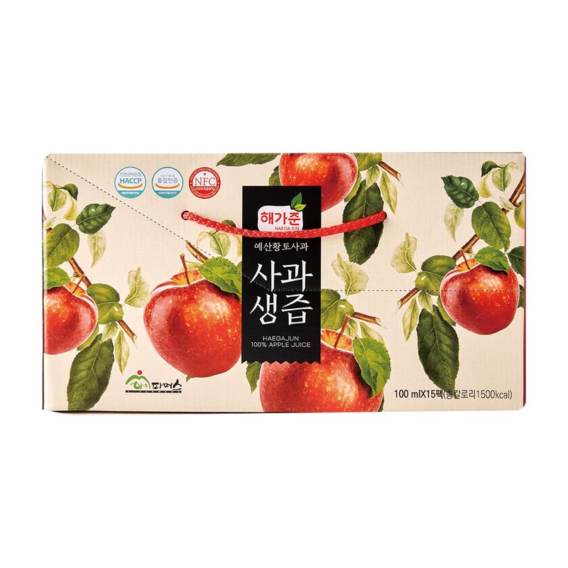 [HAEGAJUN] Real 100% Apple Juice, 3.7 oz 15 Packs x 2 Boxes, No Added Sugar and Water, 100% Apple Only for Kids School Lunch, Snacks, Family, to take on the go