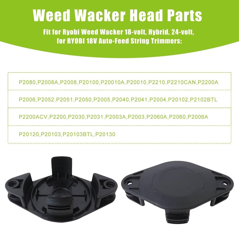 for Ryobi Weed Wacker: 18-volt, for Hybrid, 24-volt, for RYOBI 18V Auto-Feed String Trimmers: P2080, P2008A, P2008, P20100, P20010A, P20010, P2210, P2210CAN, P2200A, P2200ACV, P2200, P2030, P2031, P2003A, P2003, P2060A, P2060, P2006A, P2006, P2052, P2051, P2050, P2005, P2040, P2041, P2004, P20102, P2102BTL, P20120, P20103, P20103BTL, P20130.
