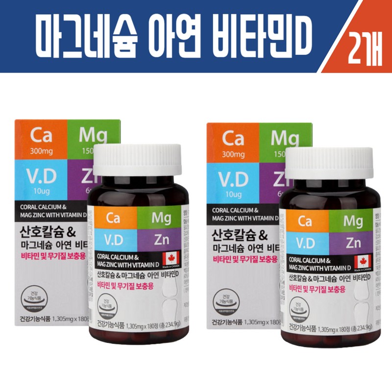 Haesoldam (HF) Coral Calcium Magnesium Zinc Vitamin D 180 tablets / 해솔담 (HF)산호칼슘 마그네슘 아연 비타민D 180정 X2개