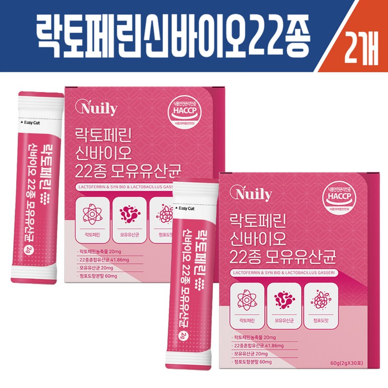 Haesoldam Newly Lactoferrin Cin Bio 22 Types Breast Milk Lactobacillus 30 Packets / 해솔담 뉴일리 락토페린신바이오22종모유유산균30포 X2개