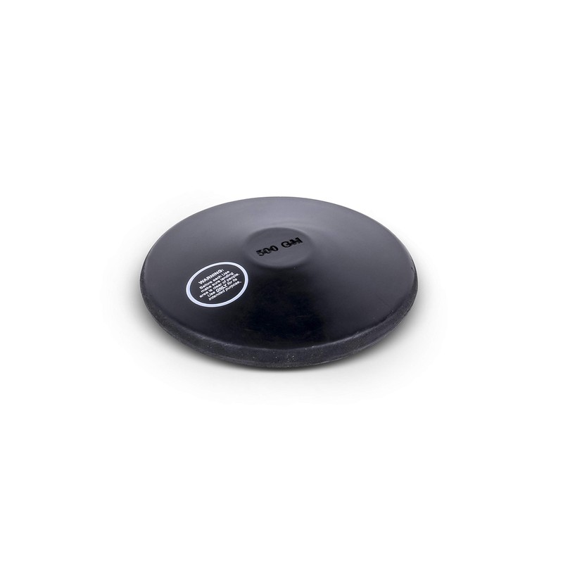 Throwing discus for training. Made of rubber. Suitable for hard grounds and indoor training. One piece construction. Weight: 1.50kg. Colour: Black.