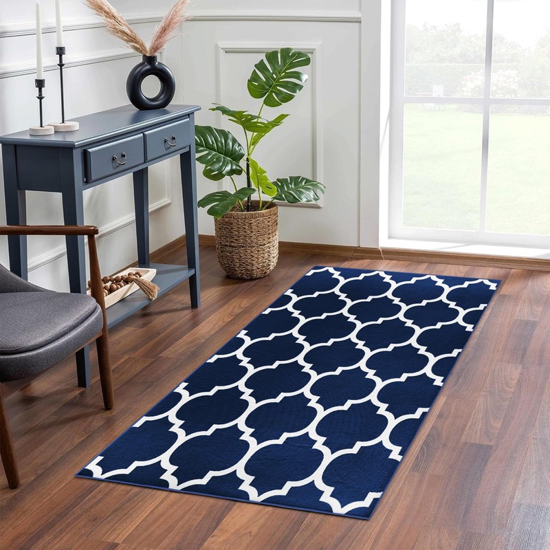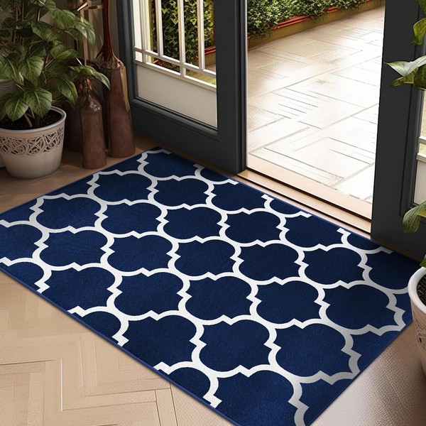 Hafaa Rugs Living Room - Area Rugs for Bedroom Trellis Style Modern Floor Carpet Non Shedding Durable Soft Touch Ava Navy Small Rug (40 x 60Cm)