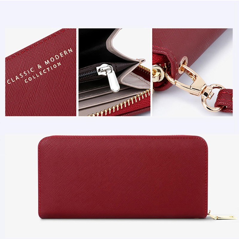 - ♥ 8 card pockets, 3 large open pockets, 2 free pockets, 1 zippered coin pocket, and can hold your smartphone. Conveniently stores cards, bills, receipts, licenses, etc
