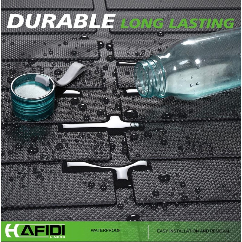 • 【ALL-WEATHER PROTECTION】HAFIDI weatherproof mats. Ergonomically designed channels and raised edges effectively trap liquids, sand, snow, etc. and protect the vehicle floor well. The anti-slip buckle design is consistent with the original car position to ensure that the floor mat is firmly fixed in place.