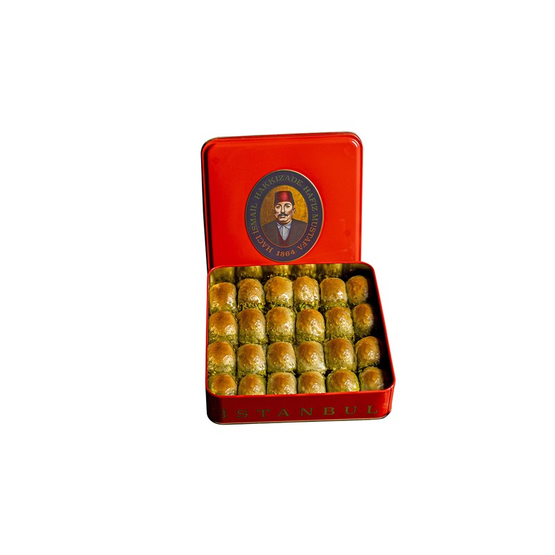 - A Box Full of Delicious Treats - Savor the mouthwatering taste of true Turkish baklava. Our tin can contains dozens of pieces of assorted pistachio, walnut, and hazelnut baklavas for you to enjoy! S size Metal (Tin) Box, Approximate Gross Weight 2.2 lbs = 1 kg = 24 pcs