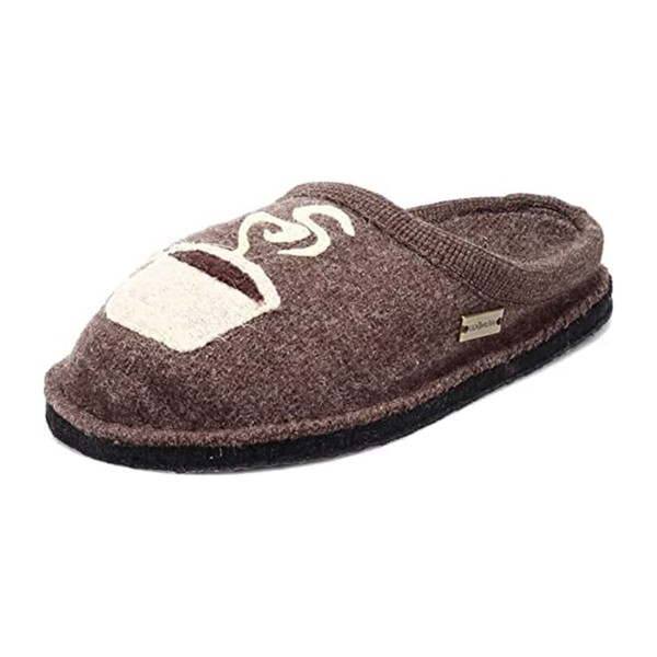 - WARMTH & COMFORT - HAFLINGER’s Coffee wool slipper offers warmth and comfort, a breathable boiled wool upper, and is created from premium natural materials. As a java fan you will love the coffee-themed applique, a perfect pairing with that first cup in the morning.