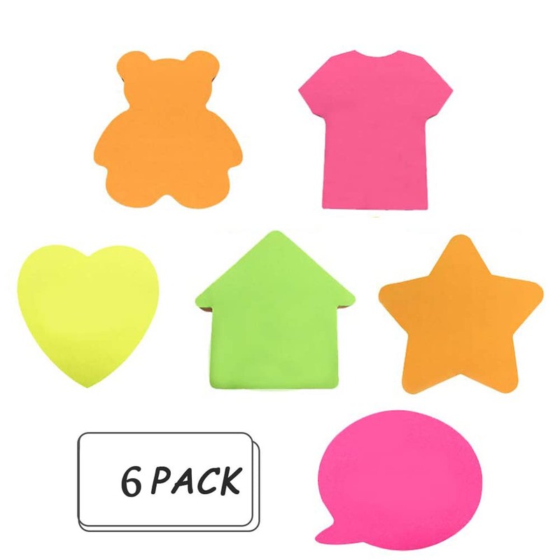 Haftnotizen, Klebenotizen, selbstklebend, wiederentfernbar, 8 Blöcke pro Packung, 30 Blatt pro Block, 8 verschiedene Formen pro Packung, 75 x 75 mm 6 Stück.